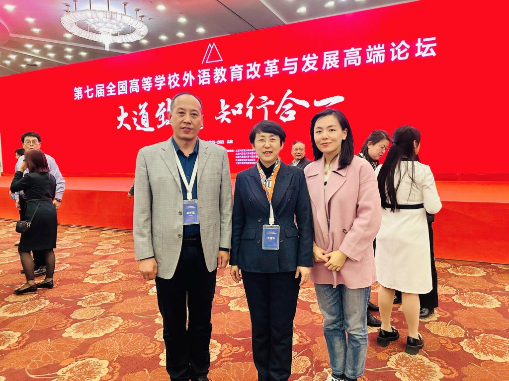 2023年3月25-26日,第七届全国高等学校外语教育改革与发展高端论坛在北京九华山庄举行。大会由北京外国语大学、教育部高等学校外国语言文学类专业教学指导委员会、教育部高等学校大学外语教学指导委员会与中国高等教育学会外语教学研究分会在北京联合举办。本届论坛以党的二十大精神为指引,以“大道致远,知行合一”为主题,旨在探讨外语教育现代化建设新路径,进一步推动外语教育高质量发展。我院院长卞建华、德语系主任綦甲福、院长助理曹杉参加了本次论坛。