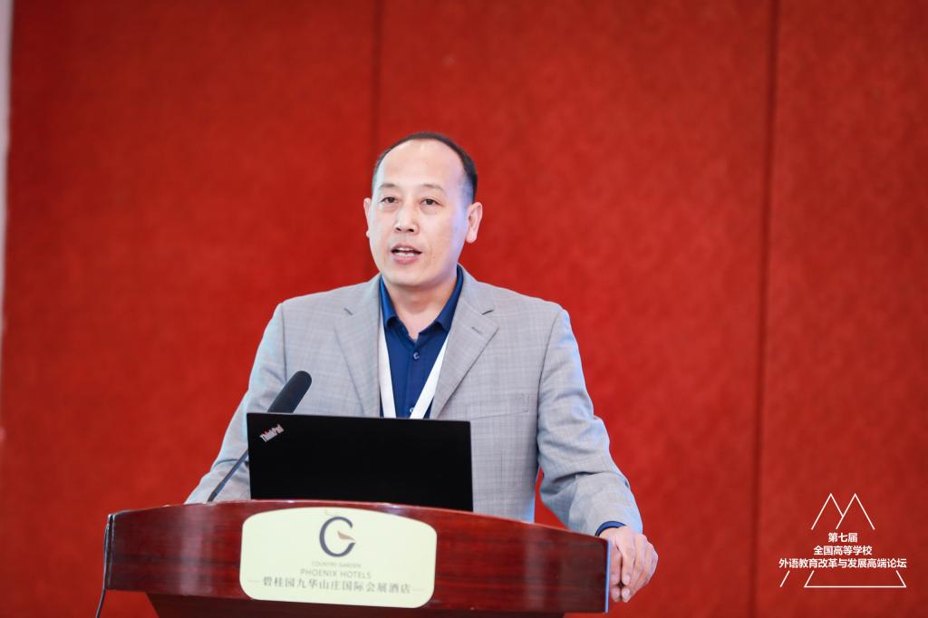 綦甲福主任在专题论坛五“多语种教育论坛”做了题为“学德语·译中国·做有德之人——青岛大学德语专业课程思政建设举措”的报告,以青岛大学外语学院德语专业翻译类课程思政建设为例,介绍如何将知识传授、能力培养和价值塑造融入人才培养方案与课程建设的实践经验。