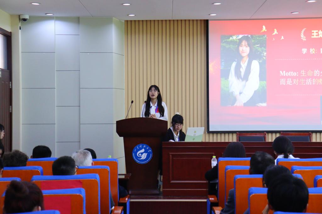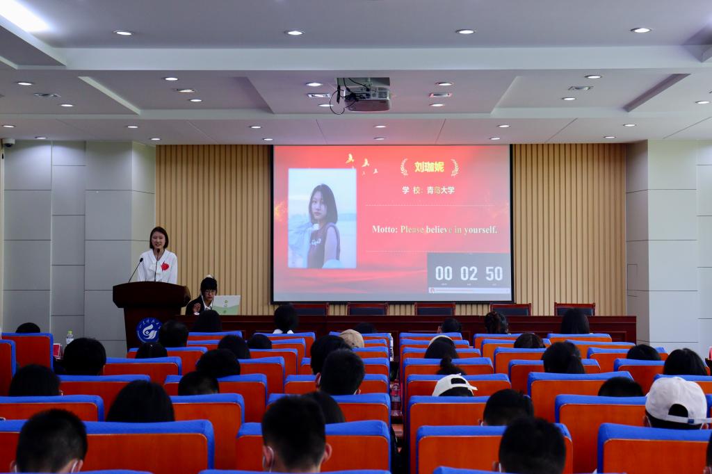 下午的比赛中,共有来自8所驻青高校的15名选手出场。比赛的主题为“What We Can Do for the Chinese Path to Modernization”。 比赛分为定题演讲和即兴演讲两个环节。第一轮比赛,王灿然同学和刘珈妮同学发挥出色,分别以第一名和第三名的成绩晋级下一轮。在即兴演讲阶段,两位同学以逻辑清晰、内容充实的表述和自信流利的回答获得了评委的一致肯定,最终取得了一、二等奖的好成绩。