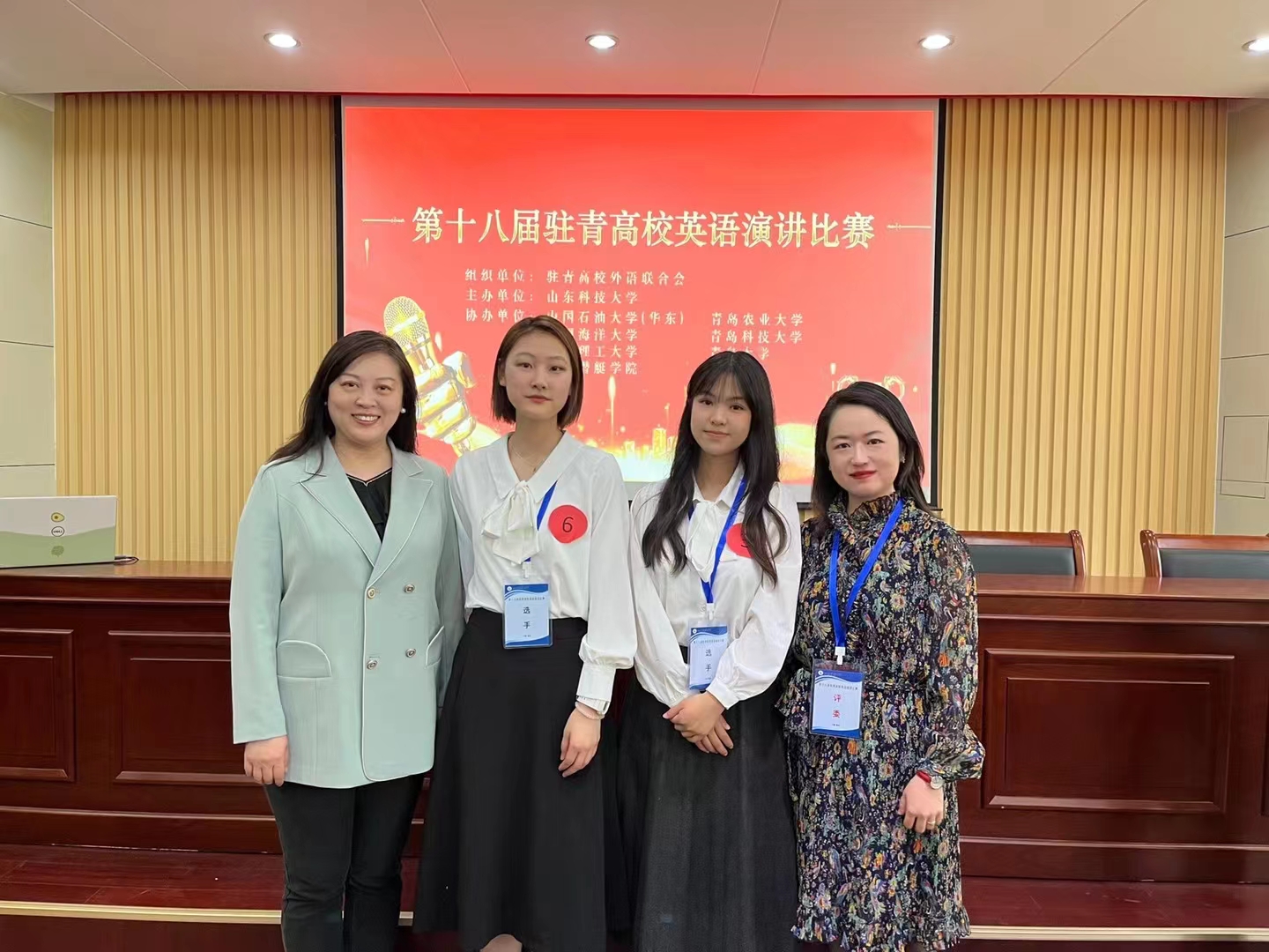 5月13日,第十八届驻青高校英语演讲比赛在山东科技大学举行。我院选派的22级英语专业王灿然同学获得一等奖,22级英语教育专业刘珈妮同学获得二等奖,牛聪琳老师获得优秀指导教师奖。