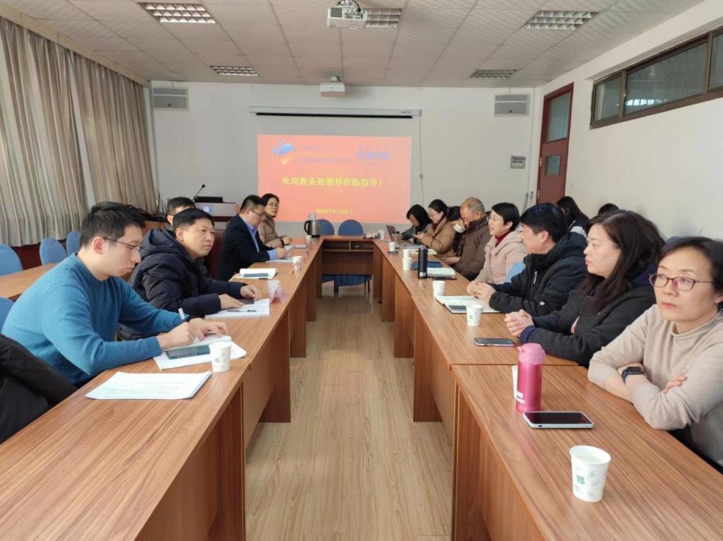 开学伊始,学校各部门即投入到紧张工作中。2月14日下午,教务处主持工作的马泽刚副处长和张永进副处长、李传军副处长、学生注册和信息办公室毛晓燕主任等一行4人来到外语学院调研指导学院一流专业建设、师范专业认证、人才培养工作、创新实验班建设、学业管理等方面的工作。卞建华院长、王海青副书记、娄永强副院长、日语系杨剑主任、英语教育系黄芳主任、英语系吕云副主任、本科教学办李兰主任、牛凤娟老师、创新实验班班主任孙旻、王建彬、辅导员米娟、温凌鹤、李聪聪等老师参加了此次调研交流。