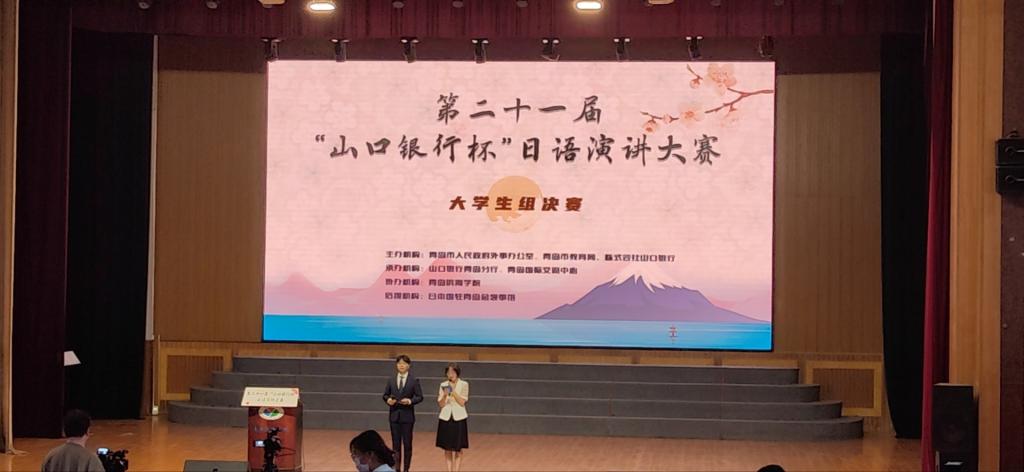 下午演讲题目从“好友和恋人的约定我会优先哪一个?”、“社交软件的使用方法”、“我和日本”三个题目中选择,共计26名低年级同学入选。在低年级组个人决赛中,我校日语系2021级王露茜同学获得特等奖;2021级刘畅同学获得二等奖。青岛大学以团体预赛一等奖的成绩晋级决赛。第二十一届“山口银行杯”日语演讲大赛大学生团体组决赛暨本届大赛的颁奖仪式将于今年11月份举行。