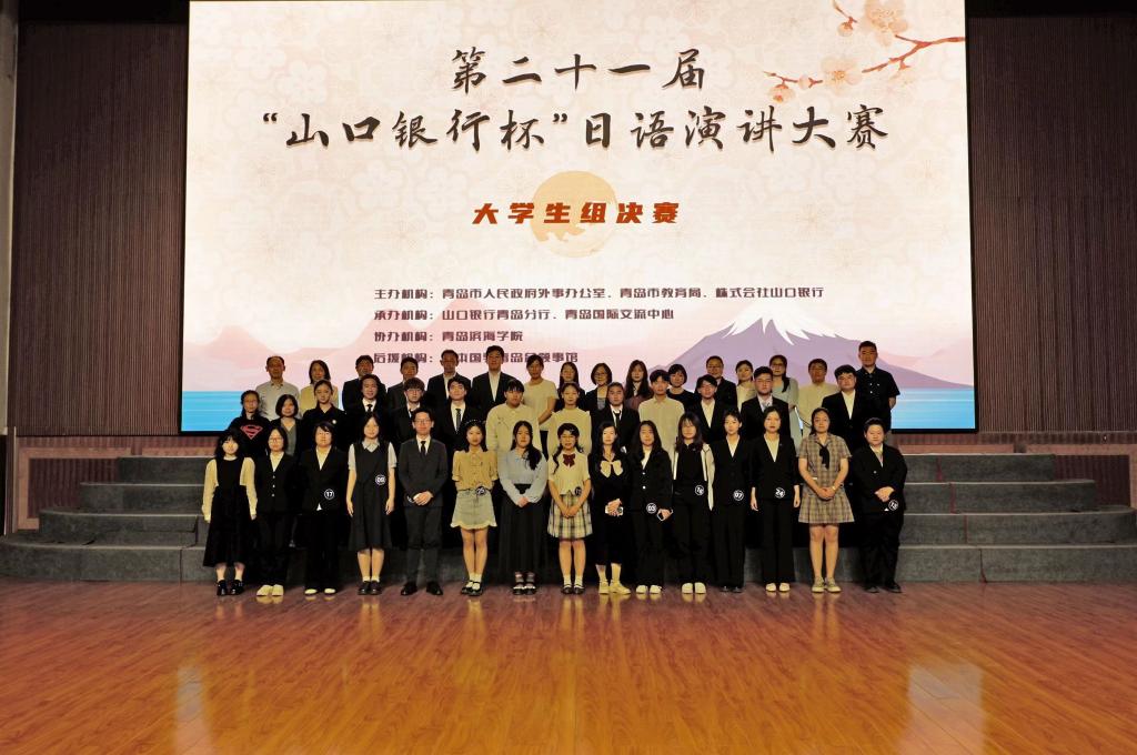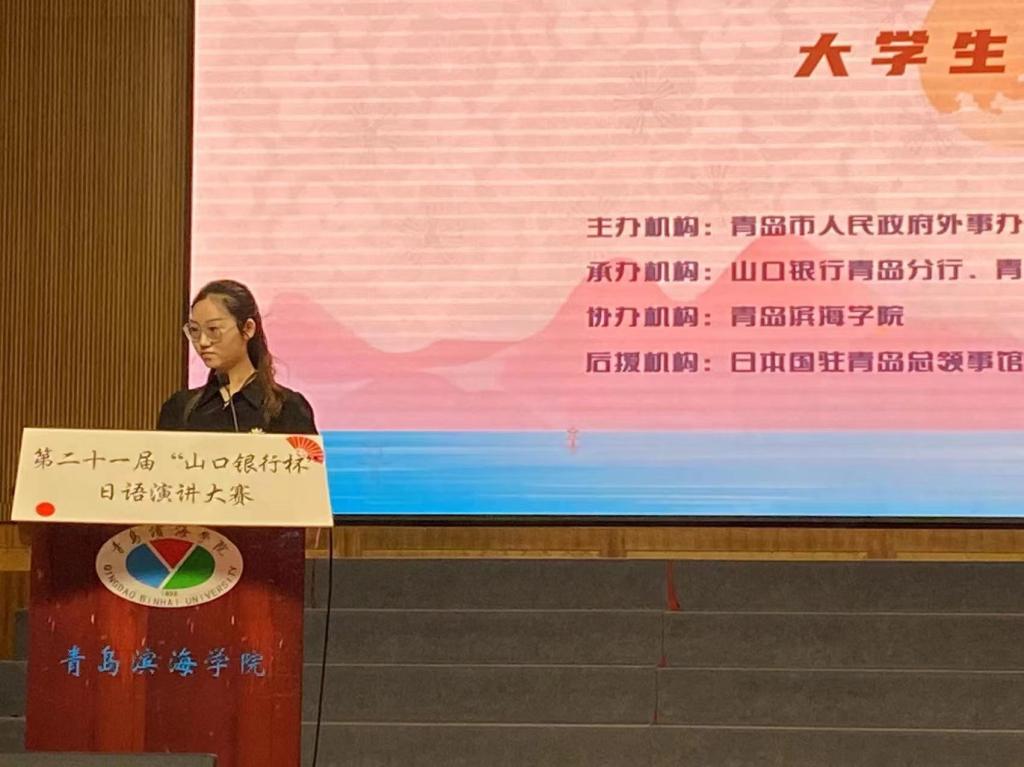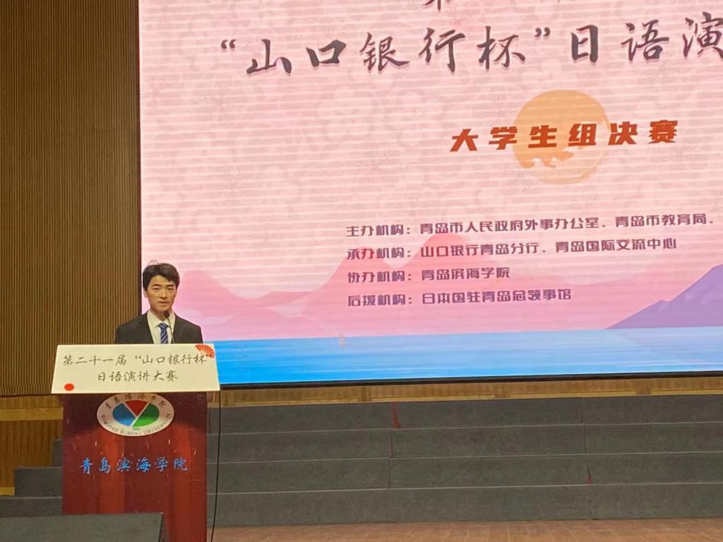 6月3日,第二十一届“山口银行杯”日语演讲比赛大学生组决赛暨大学生团体组预赛在青岛滨海学院成功举行。本届日语演讲大赛由青岛市人民政府外事办公室、青岛市教育局、日本国山口银行株式会社主办,青岛国际交流中心和山口银行青岛分行共同承办,青岛滨海学院为协办,日本国驻青岛总领事馆为后援。