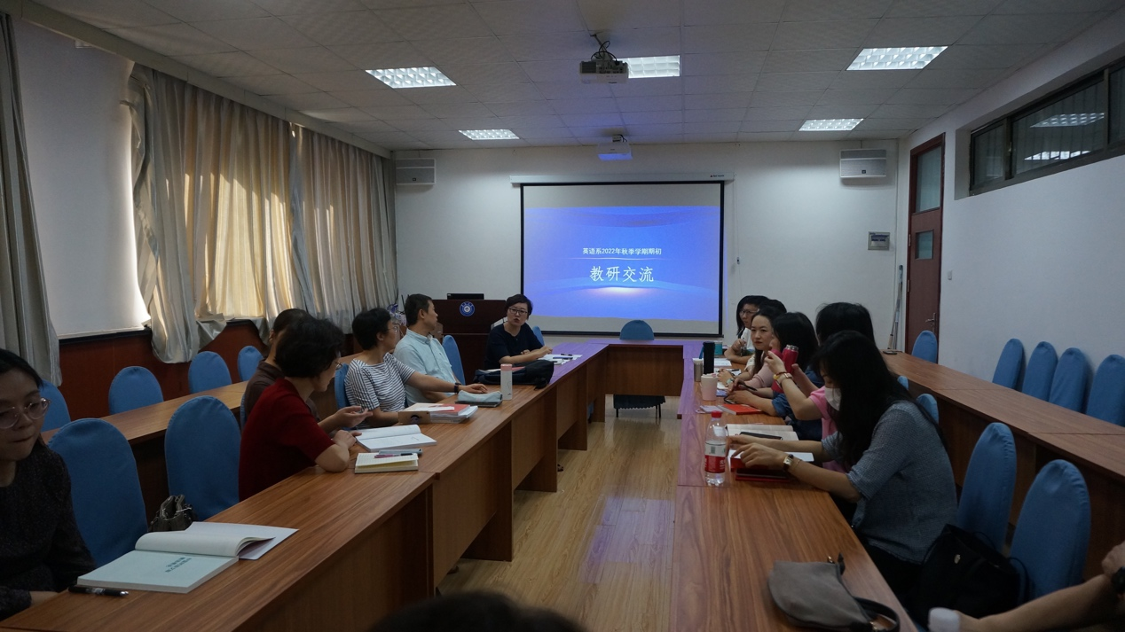 2022年9月22日下午,外语学院英语系2022年秋季学期期初教研交流成功举行。会议由英语系副主任王薇老师主持,英语系教师就新学期开学以来教学过程中遇到的问题进行了热烈讨论,共同探索教学方法与实施路径。