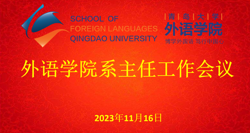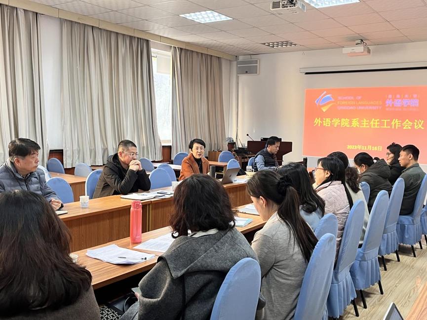2023年11月16日下午14:00-17:10,外语学院于博文楼312召开外语学院系主任工作会议,外语学院党政班子成员、各系主任、副主任和辅导员老师参加会议。会议由副院长娄永强主持。