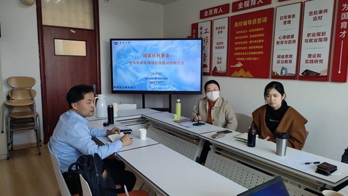 随后,布占廷副院长从项目宗旨、资助范围、申请形式、项目类别、资助额度、申请要求、申报程序等方面对2023年中华学术外译项目做了详尽的介绍,建议老师们认真阅读申报公告,研读选题指南,积极联系出版单位,建好翻译团队,力争获得新的突破。