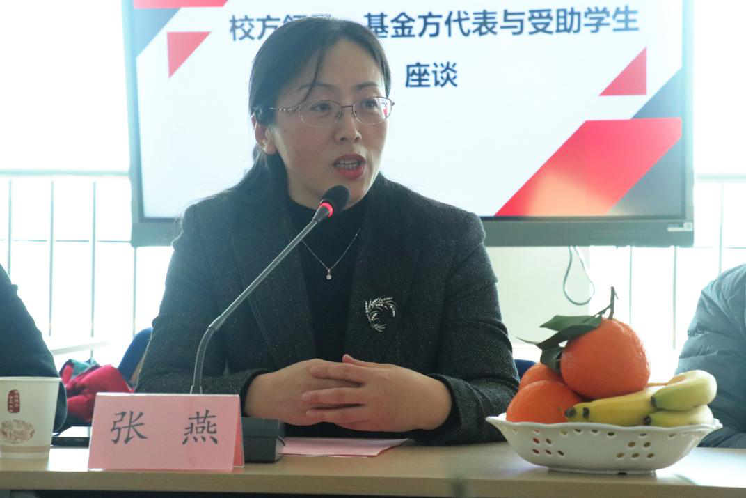 校方领导、基金方代表与受助学生展开座谈。