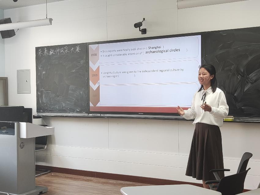 今日云景好,水绿秋山明。10月13日下午,外语学院在博文楼413举行了第六届中国高校外语学科发展联盟师范类院校未来教师素质风采展示活动青岛大学校内选拔赛。来自于英语教育系2021级和2022级的15名学生参加了比赛。布占廷副院长,英语教育系副主任吕凯良老师,徐平老师,施慧老师担任本次比赛评委。比赛中选手们表现优异,充分展现了外语学院英语师范生良好的专业素养和蓬勃的精神风貌。