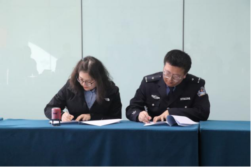 仪式第二部分,王扬代表青岛大学外语学院团委,董书博代表青岛监狱监区第二联合团支部共同签署了合作共建协议。根据协议内容,青岛大学外语学院将继续发挥学院专业优势,提供外事翻译、外语培训等志愿服务;青岛监狱将发挥党团基地优势资源,提供师生安全教育、廉政教育、警示教育等活动。通过搭建活动平台,实现校社团支部共建共享。