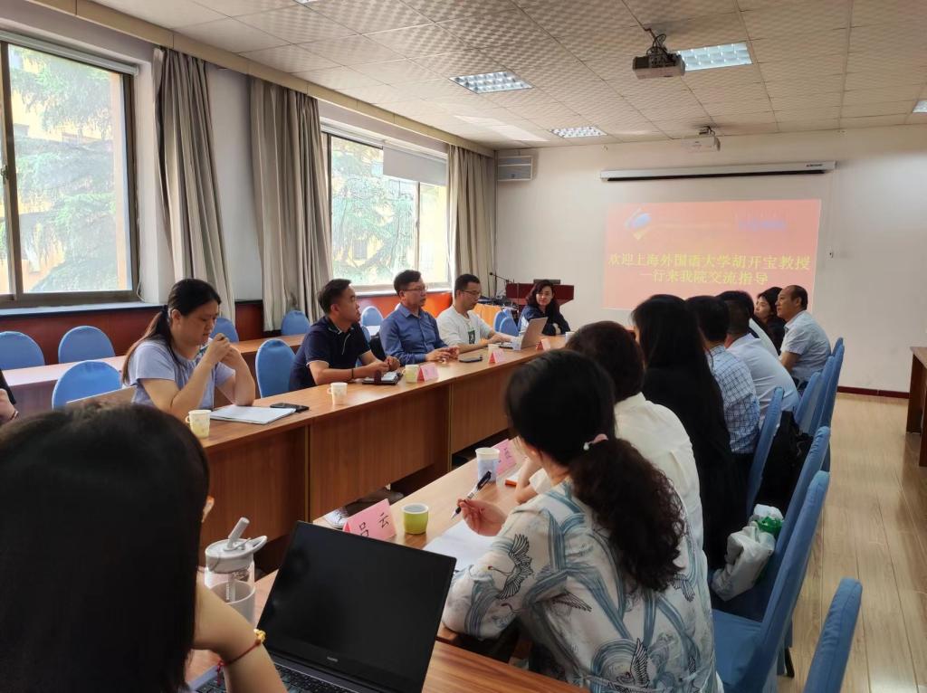 2023年9月1日,上海外国语大学校长助理、语料库研究院院长、教育部长江学者胡开宝教授和语料库研究院工程师张凯一行来到青岛大学外语学院进行了座谈,共同探讨外语学科在当前转型期如何借助语言数据的最新发展和应用,进一步提升外语学科的人才培养、专业水平和影响力。外语学院党委书记周伟、院长卞建华教授、学院班子成员、各系办中心主任、特聘教授、骨干教师、计算机科学技术学院相关老师参加了座谈。卞院长代表学院对胡开宝教授一行的到来表示欢迎,并对我院外语学科和语言大数据创新实验班的建设与发展情况进行了介绍。