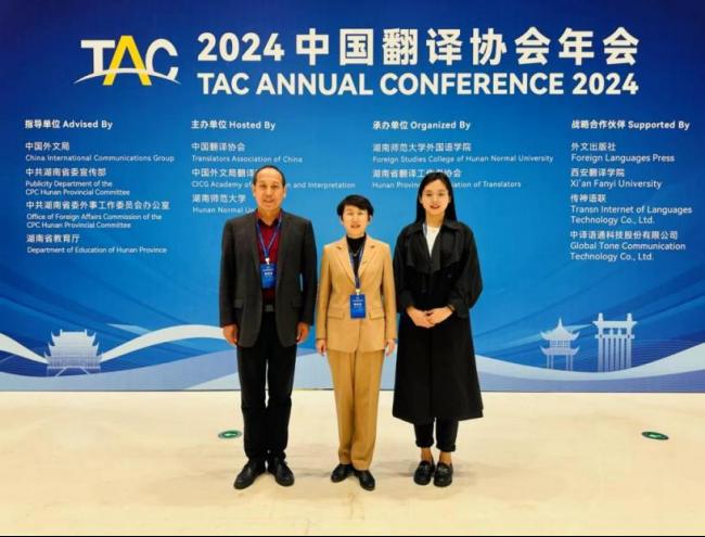2024年3月30日,由中国外文局、中共湖南省委宣传部、中共湖南省委外事工作委员会办公室、湖南省教育厅指导,中国翻译协会、中国外文局翻译研究院、湖南师范大学主办的2024中国翻译协会年会在湖南长沙召开。本届年会以“推动文明交流互鉴:译界的责任”为主题,吸引了全国各地翻译领域近千名专家学者及行业代表参会。我院院长卞建华教授、德语系主任綦甲福教授、英语系迟帅副教授参加 会议。