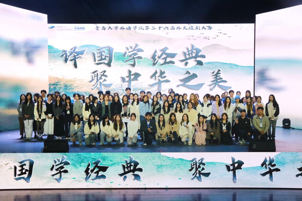 2024年4月23日晚,外语学院第二十六届外文短剧大赛在青大剧院隆重举行。本次大赛以“译国学经典,聚中华之美”为主题,旨在通过多语种演绎,深入挖掘传统文化的奥秘,展现传承传统文化的力量。