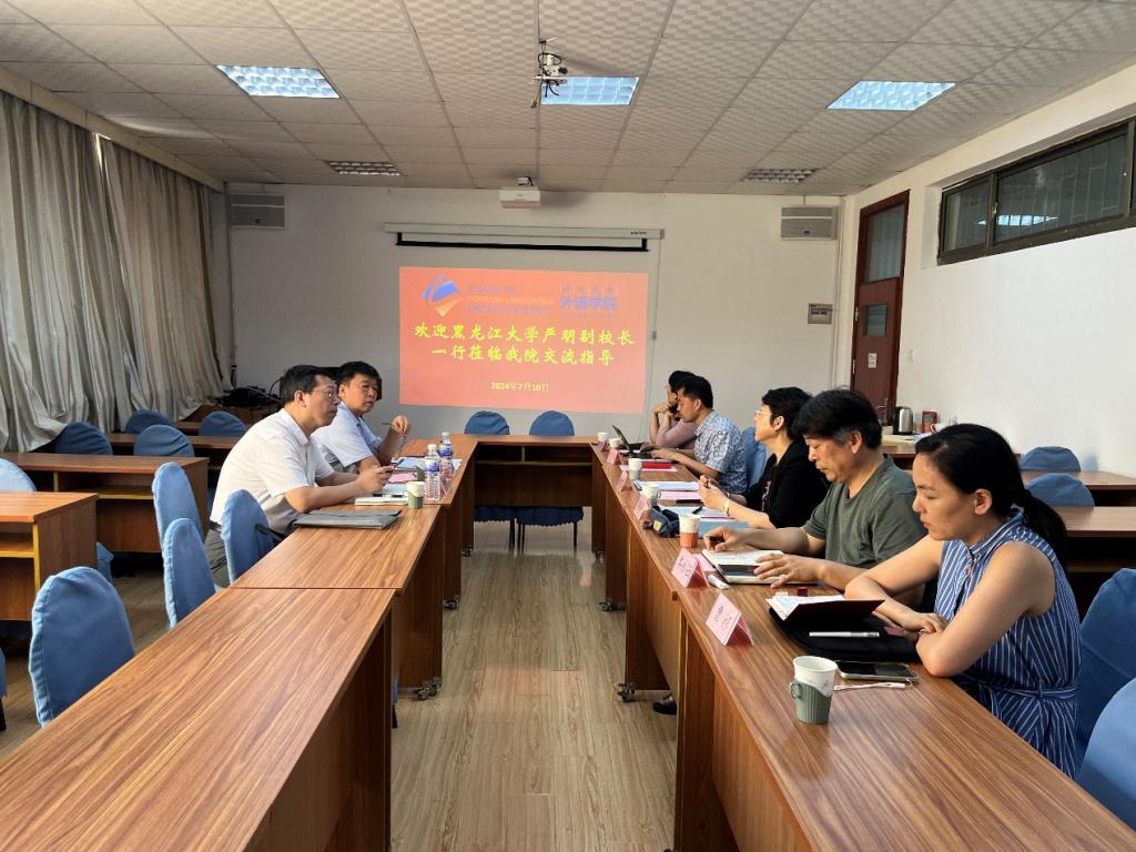 7月10日下午,黑龙江大学严明副校长一行来我莅临我院交流指导。外语学院党委书记陈崇研、院长卞建华、副院长布占廷、副院长娄永强、院长助理曹杉、俄语教师刘晓玲参加座谈会议。