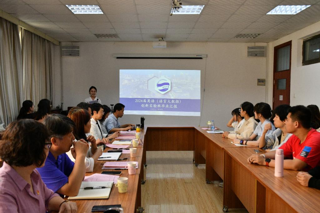 班长和优秀学生代表向老师们进行了班级成长汇报。四年间,班级同学团结协作、躬身践行,在专业素养、学生工作、文体美育、志愿服务等方面均取得了不凡的成绩。作为英语(语言大数据)创新实验班的第四届毕业生,同学们不负众望,向学校交上了一份硕果累累的答卷,其中20人考入境内外知名高校继续深造,深造率达71.4%。