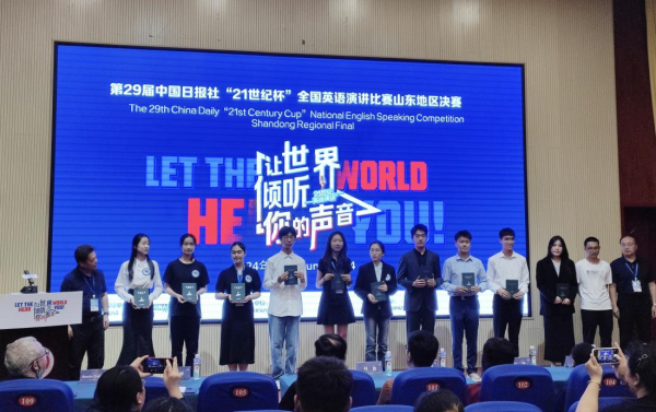6月23日,第29届中国日报社“21世纪杯”全国英语演讲比赛山东地区决赛在烟台职业学院举行。我院2022级英语语言大数据的韩嘉程同学和2023级法语的李一林同学代表青岛大学参赛。在比赛中,两位同学沉着应战,发挥出色,最终韩嘉程同学和李一林同学均获得省级二等奖,成功晋级下一轮的全国半决赛。