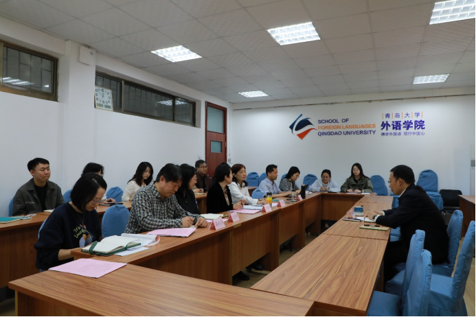 5月13日上午,副校长刘恩贤到外语学院调研指导工作,学院党政领导班子成员、各党支部书记、各系办中心主任参加座谈交流,外语学院院长卞建华主持会议。