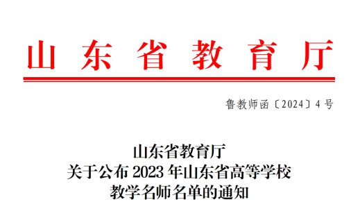 近日,山东省教育厅公布了山东省2023年高等学校教学名师获评名单,全省共有200名教师被评为省级教学名师,其中本科院校120名。我院綦甲福教授喜获此殊荣。截至目前,学校共获评省级教学名师27人,国家级教学名师1人。