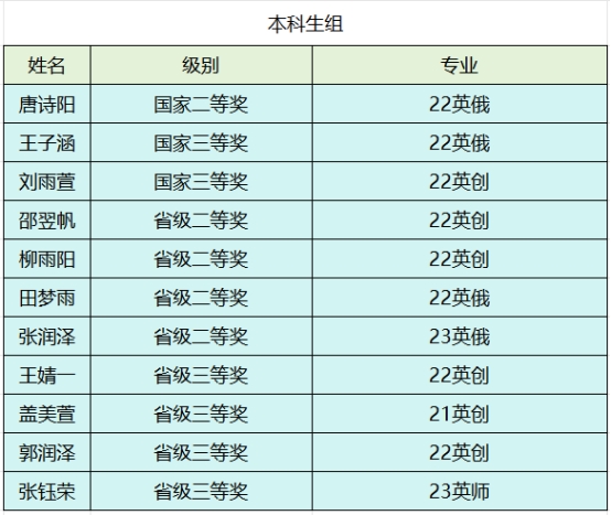 由国际英语外语教师协会中国英语外语教师协会主的“2023年全国大学生英语翻译大赛”于2024年1月10日揭晓结果,我院共有6名研究生和11名本科生获得省级及以上奖项,祝贺以下获奖同学: