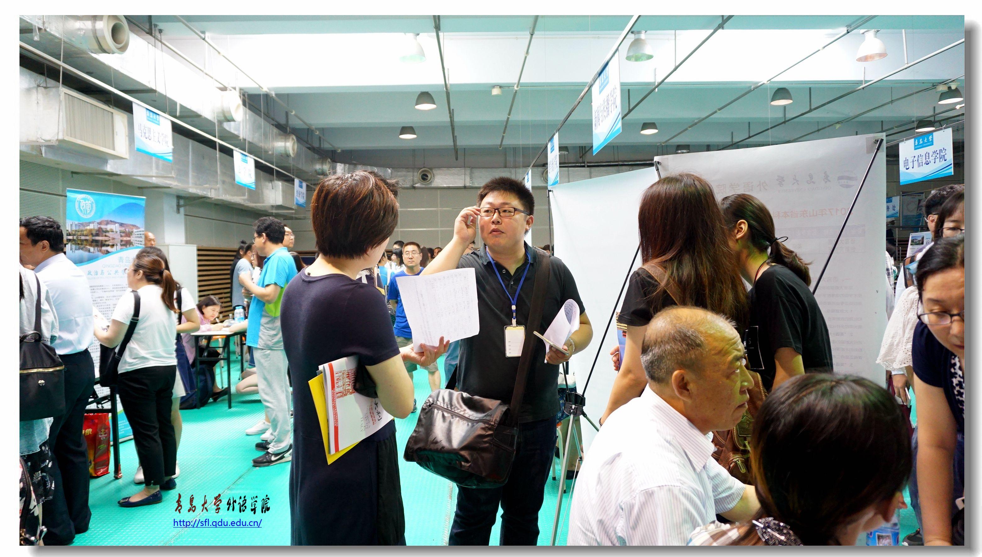 6月25日上午,由青岛半岛都市报举办的2017年全国高校招生咨询会及学校组织的高招现场咨询会在我校体育馆举行。为了更好的搭建考生、家长与学院交流的平台,充分展示学院、专业的办学水平和人才培养特色,帮助考生更好地了解专业设置信息,指导学生科学填报志愿、合理选择专业,吸引更多优质生源报考,我院专门成立了招生宣传工作小组开展专业展示活动。各教学系主任或副主任亲自到咨询现场进行推介,学院党委副书记牟晓燕也到现场进行了指导。