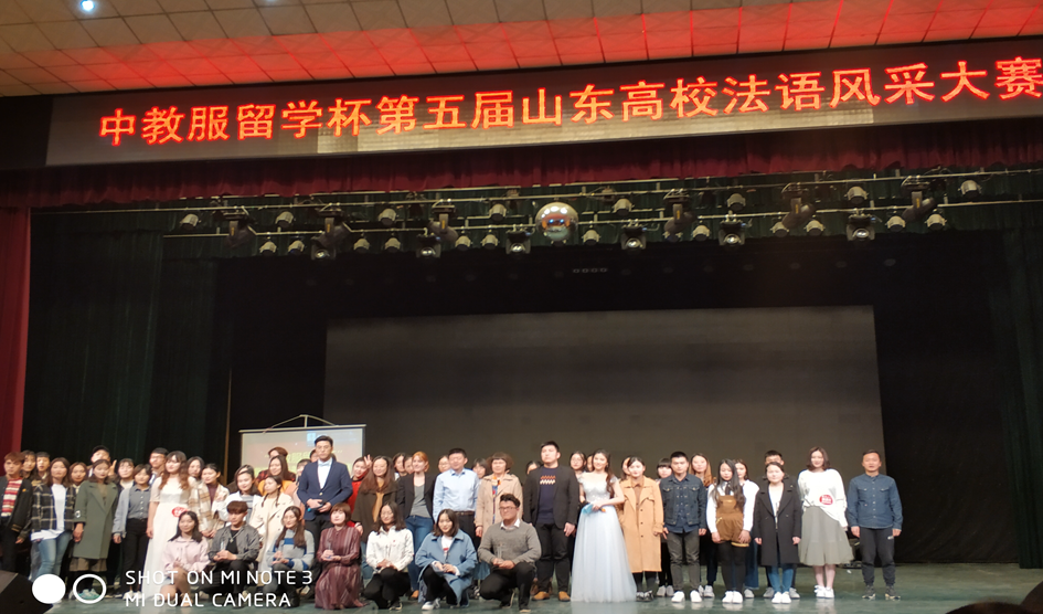 4月15日,第五届山东高校法语风采大赛在鲁东大学大学生活动中心举行。法国专家Maud Miquau女士、中国教育服务中心杨伟波经理、巴黎四大臧艺航先生、格勒大学徐曼女士担任评委,本次比赛共有来自山东省的八所高校参加。