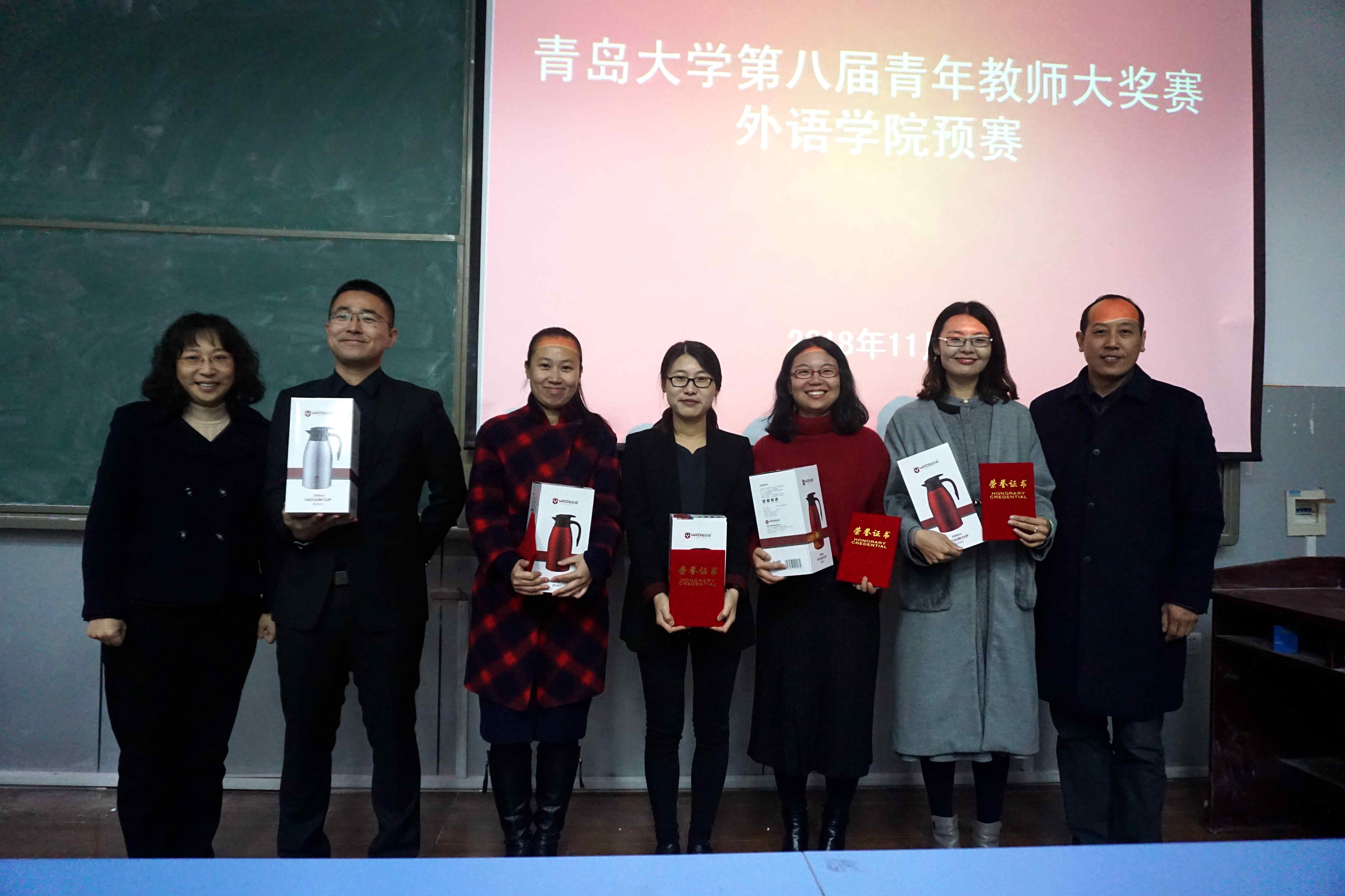 比赛设一等奖1名,二等奖2名,三等奖5名。参赛教师在比赛中充分展示了各自的教学优势和特色,通过我院教指委委员评审打分,牛聪琳老师获得一等奖,黄芳老师、日语系范碧琳老师获得二等奖,黄怡容、沈海兰、王斐、王墨和石灿等五位老师获得三等奖。