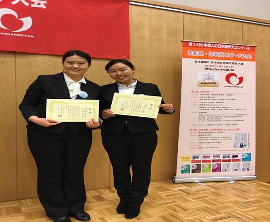 本届大赛共有国内235所高校的4288篇作品参赛,经过主办方初审及专家评审员按作文内容与日语表达质量进行的复审,最终评选出三等奖以上作品81篇和佳作奖221篇。后经主办方微信电话面试其中21名优秀获奖者评选出一等奖以上作品6篇,由日本驻华大使亲自从中评选出最优秀奖1名。历经近五个月的评审,邰华静同学脱颖而出,以全国第二名的成绩获得一等奖;2015级学生吕晓晨、孙倩倩、2016级学生周丹、刘畅、王俱扬获得佳作奖。这是继去年我院学生在该比赛中获得一二三等奖及佳作奖以来再次取得的好成绩。