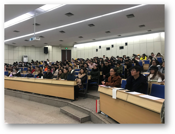 金丹女士简要介绍了中译公司在联合国语言人才培养方面做出的努力与贡献,明确了国际组织文件翻译的评判标准,并结合自身工作经历和学习收获分享了作为一名译员的修身经验,指出作为语言类人才应在世界为中国发声、应心存高远,使在场师生获益良多,激发了大家对国际组织文件翻译的兴趣。
