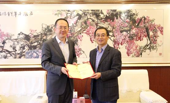 10月12日上午,学校在办公楼接待室举行仪式,聘任教育部高等学校外语专业教学指导委员会副主任委员、北京外国语大学副校长贾文键教授为我校客座教授。副校长邵彬出席仪式并代表学校向贾文键颁发聘书。人力资源处、外语学院有关负责人参加仪式。