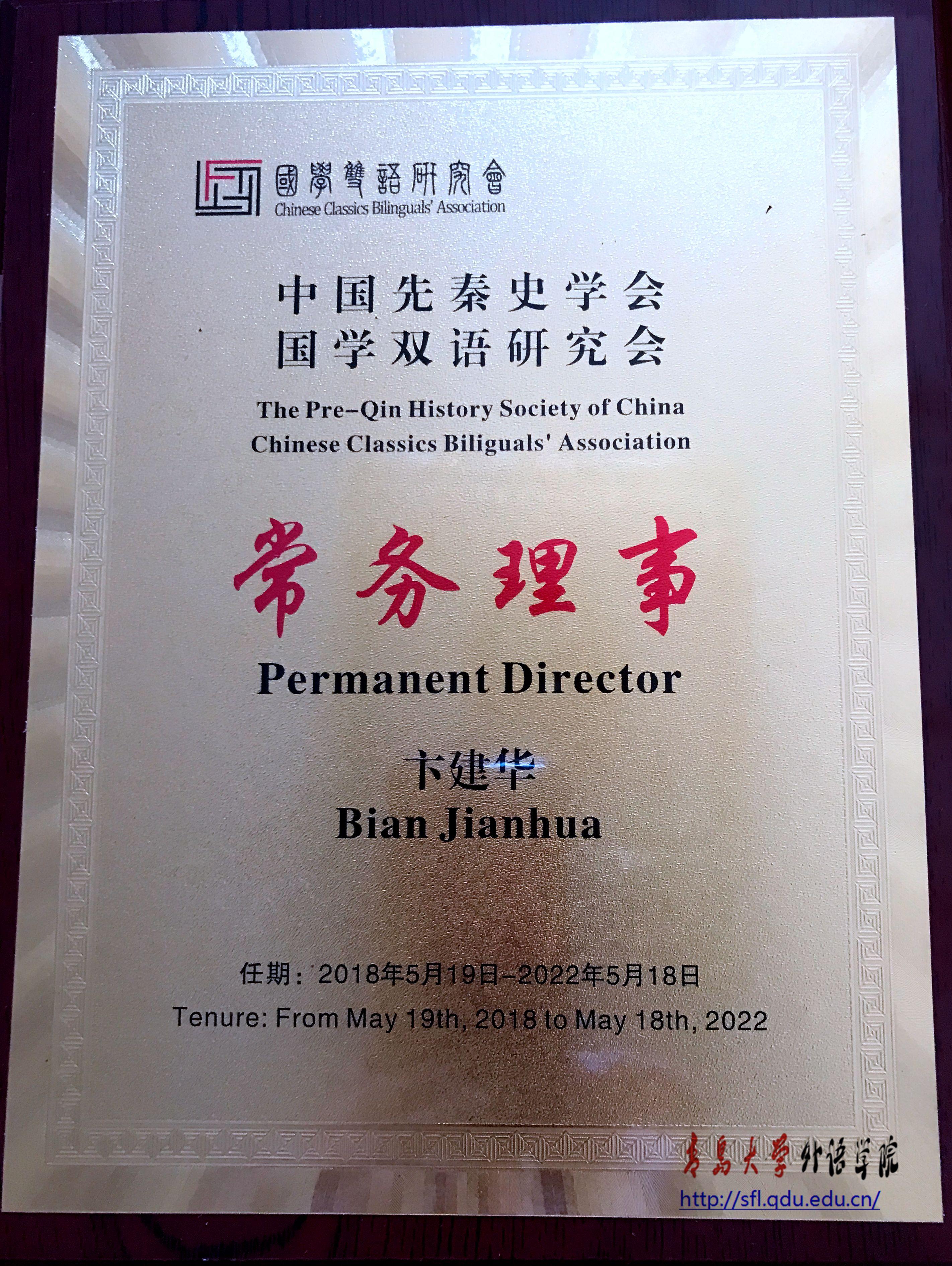 5月18-20日,中国先秦史学会国学双语研究会成立大会暨全国首届国学双语高端论坛在北京举行。此次会议指导单位是中国先秦史学会、中国关心下一代工作委员会、中国社会科学院、中国训诂学会,由北京语言大学和中国先秦史学会国学双语研究会主办,北京语言大学外国语学部、北京语言大学高级翻译学院承办。我院院长卞建华应邀参会并当选为国学双语研究会常务理事。