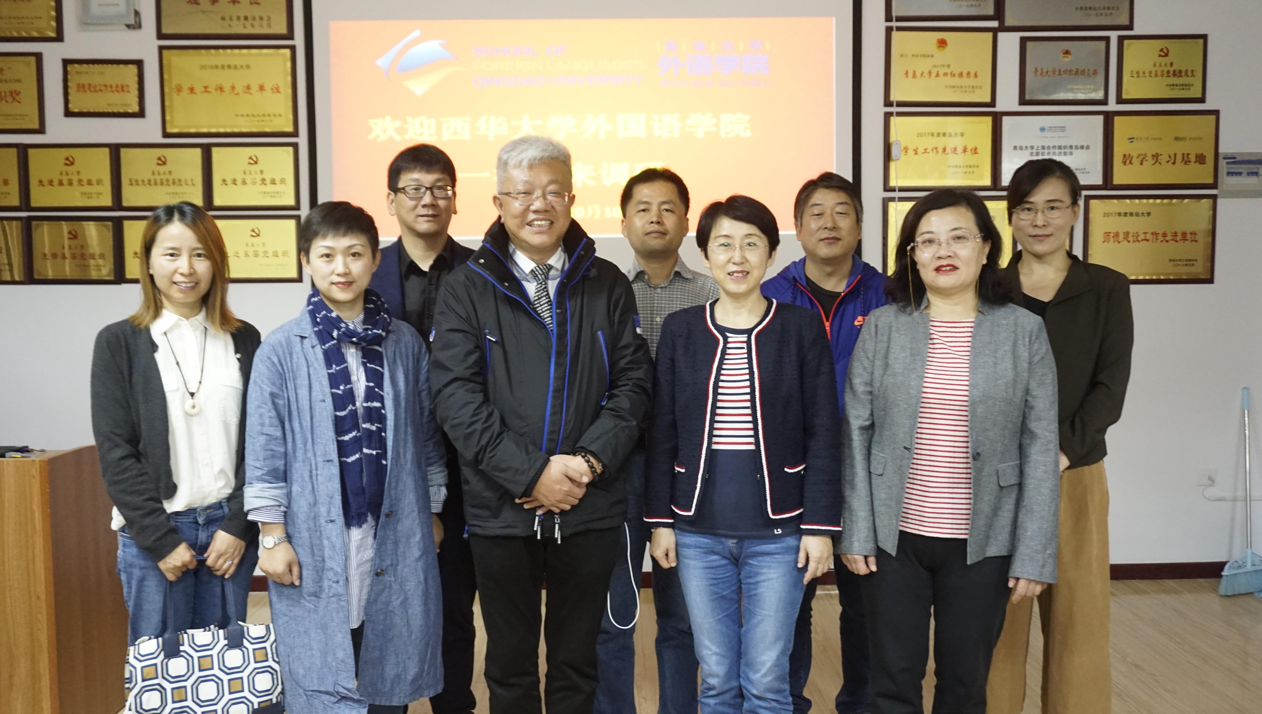 10月10日上午,西华大学外国语学院院长陈达一行四人到我院调研交流。院长卞建华,副院长布占廷、娄永强,英语系主任陈黎、日语系副主任杜雪丽参加座谈。