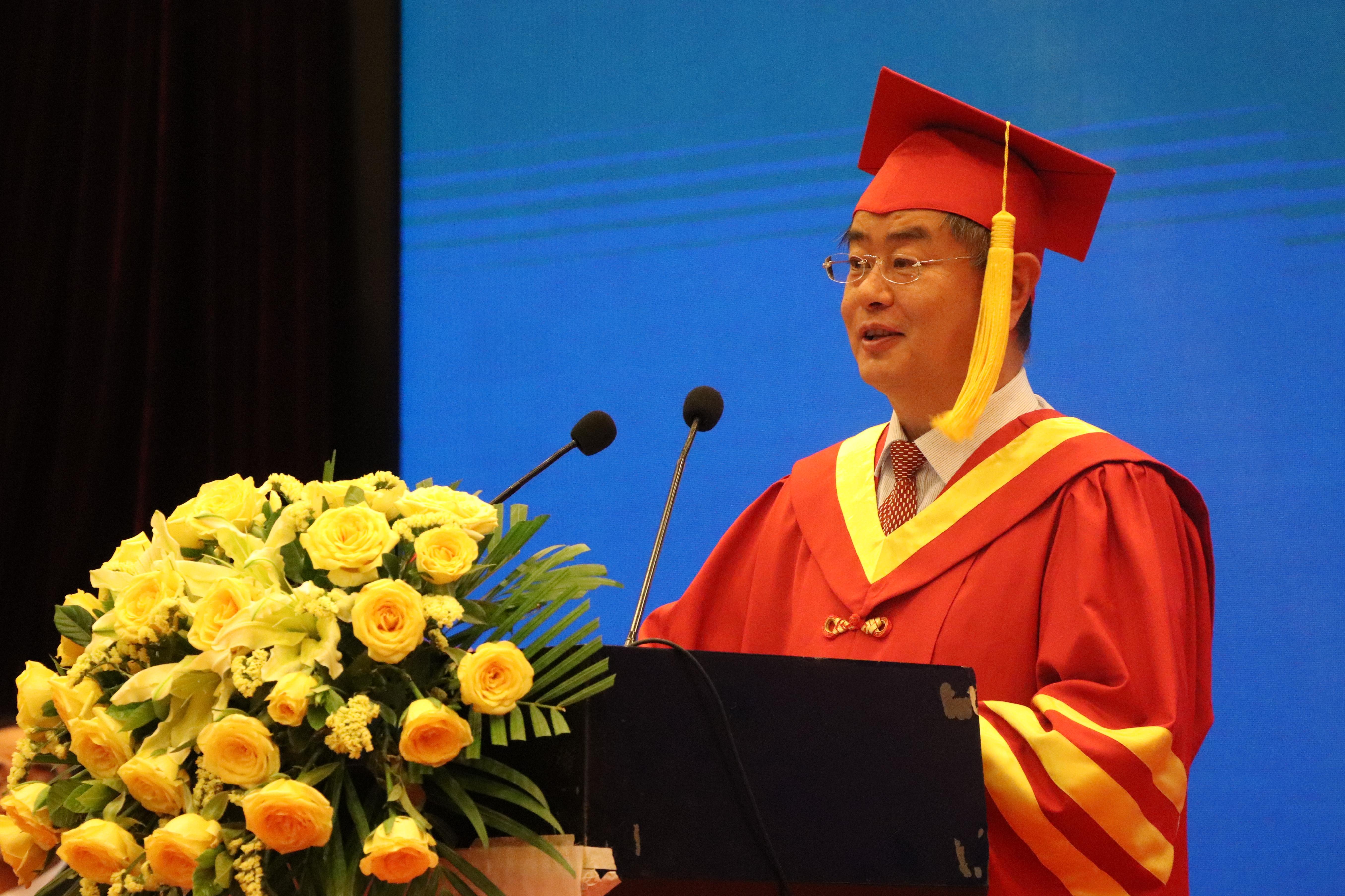 夏东伟校长在致辞中,首先向圆满完成学业的毕业生们表示热烈的祝贺,向佛罗里达国际大学和青岛大学辛勤付出的教职员工、家长亲友们表示感谢,并介绍了双方联合举办西班牙语本科双学位教育项目的进展情况。同时,他为今年考取北京外国语大学、上海外国语大学等名校研究生或获得巴塞罗那自治大学、马德里康普顿斯大学等著名大学的留学资格的优秀毕业生点赞。最后,夏东伟对毕业生们寄予殷切厚望。他指出,希望毕业生们牢记习近平总书记的嘱托,发挥专业所长,做中华文化的传播者,世界文化交流的推动者,为建设人类命运共同体贡献自己的智慧和力量。同时,传承和弘扬“爱国、进步、民主、科学”的五四精神,勇敢肩负起时代赋予的重任,积极拥抱新时代、奋进新时代,努力在实现中华民族伟大复兴中国梦的生动实践中放飞青春梦想,创造出无愧于母校、无愧于人民、无愧于时代的辉煌业绩!