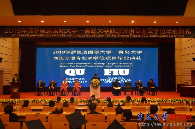 5月4日上午,佛罗里达国际大学—青岛大学西班牙语专业双学位项目毕业典礼暨学位授予仪式在国际会议交流中心博学厅举办。
