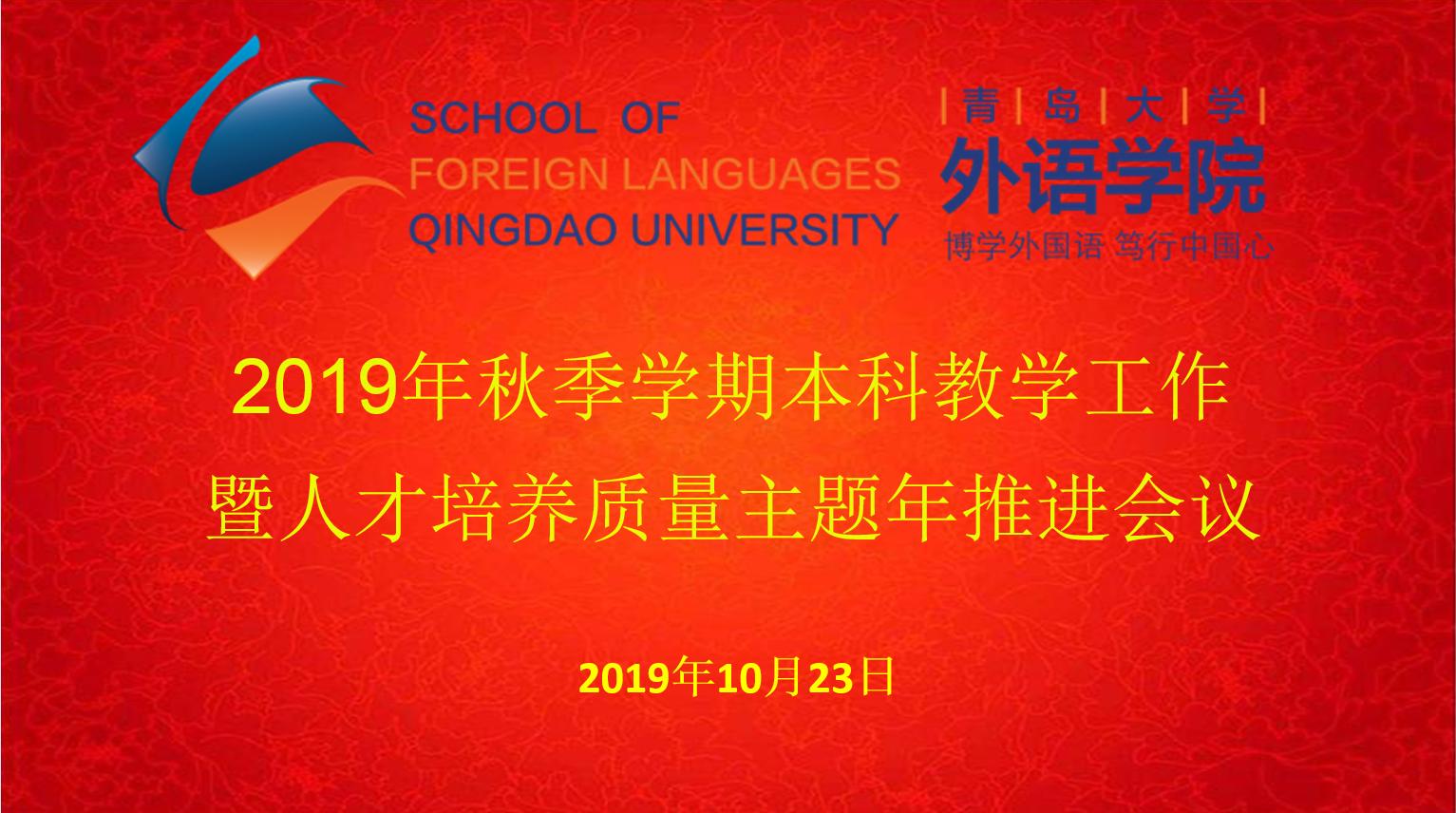 10月23日下午,外语学院在博文楼312召开了2019年秋季学期本科教学工作暨人才培养质量主题年推进会议。院长卞建华、副院长娄永强、各系各专业负责人、学院教学指导委员会委员参加了此次会议,会议由娄永强主持。