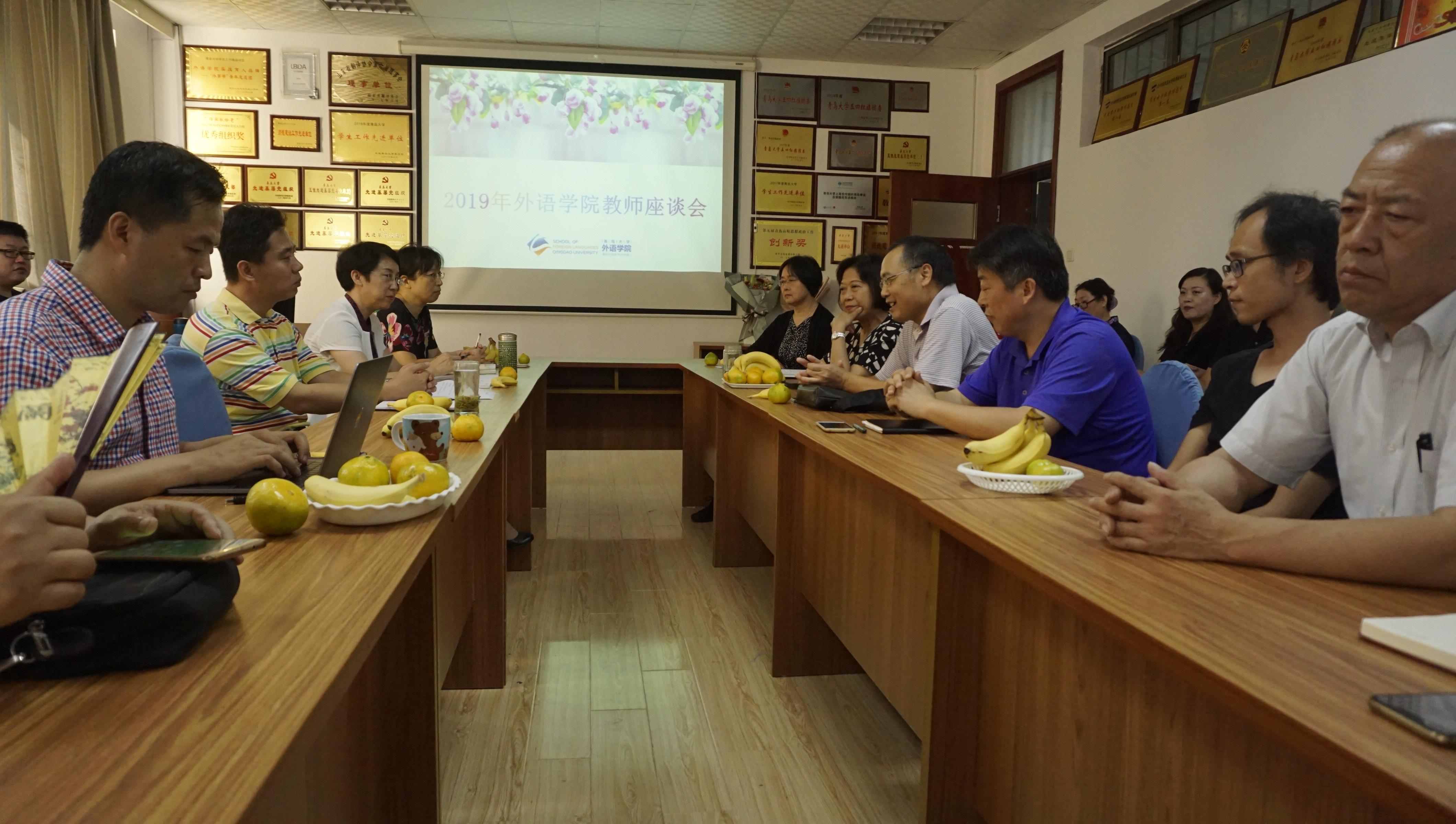 9月9日下午,外语学院在博文楼312会议室召开教师节座谈会。座谈会由院党委书记王传永主持,学院领导班子成员,各教学系主任,各办主任,特聘教授,从教三十年教师代表,2019年退休教师和新入职教师参加。
