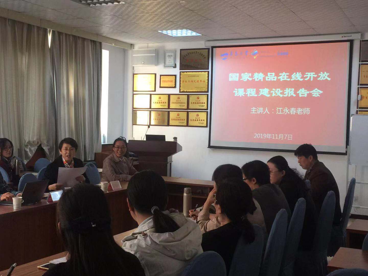 11月7号下午,外语学院在博文楼312会议室召开国家精品在线课程建设报告会,特邀我校数软学院、国家精品在线开放课程《视听语言》负责人江永春教授为我院作报告。学院教指委委员,各系主任、副主任,在建课程负责人及相关老师参加会议,报告会由副院长娄永强主持。