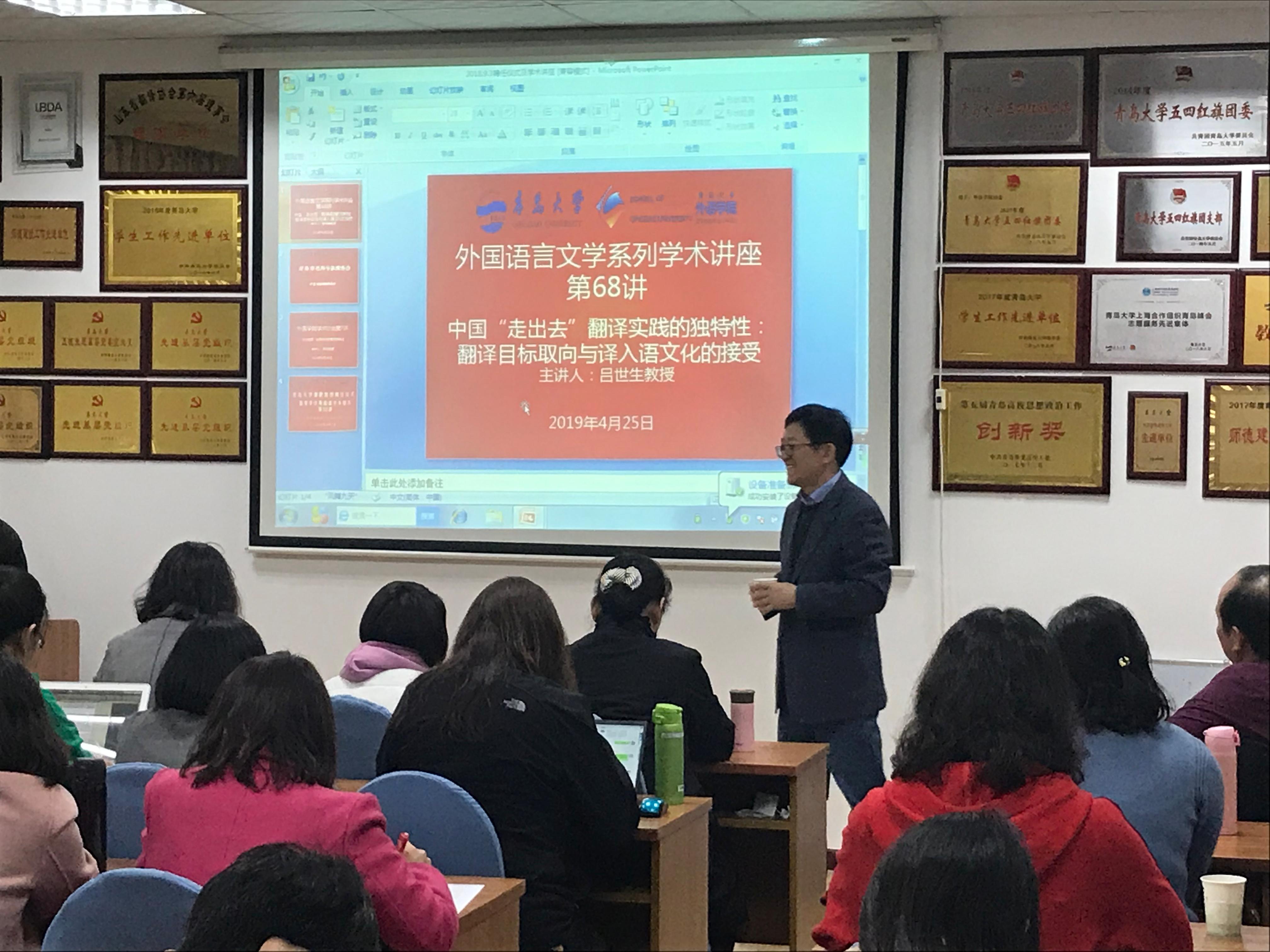 4月25日下午,南开大学外国语学院博士生导师吕世生教授应邀来我院,在博文楼312为我院师生做了题为《中国“走出去”翻译实践的独特性:翻译目标取向与译入语文化的接受》的学术讲座。外语学院师生60余人参加讲座。