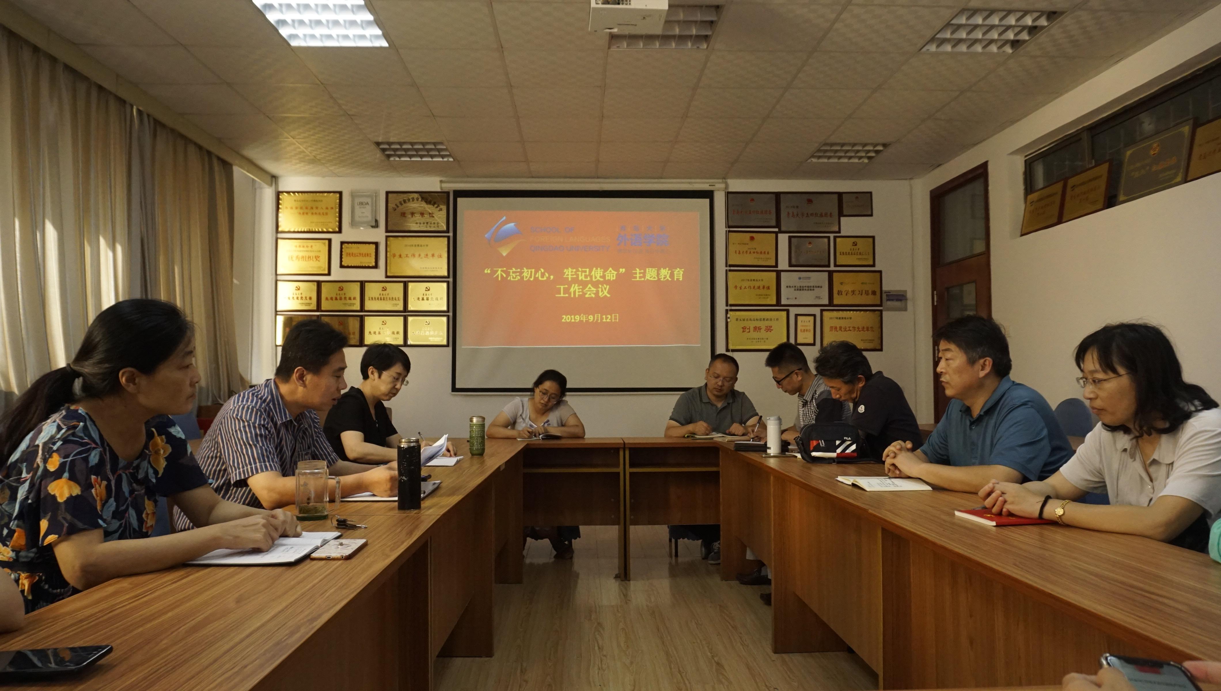 9月12日下午,外语学院“不忘初心、牢记使命”主题教育工作会议在学院会议室召开。会议传达了学校“不忘初心、牢记使命”主题教育工作会议精神,对学院“不忘初心、牢记使命”主题教育工作进行了部署动员。院党委书记王传永做主题教育动员讲话,院党委副书记、院长卞建华主持会议。