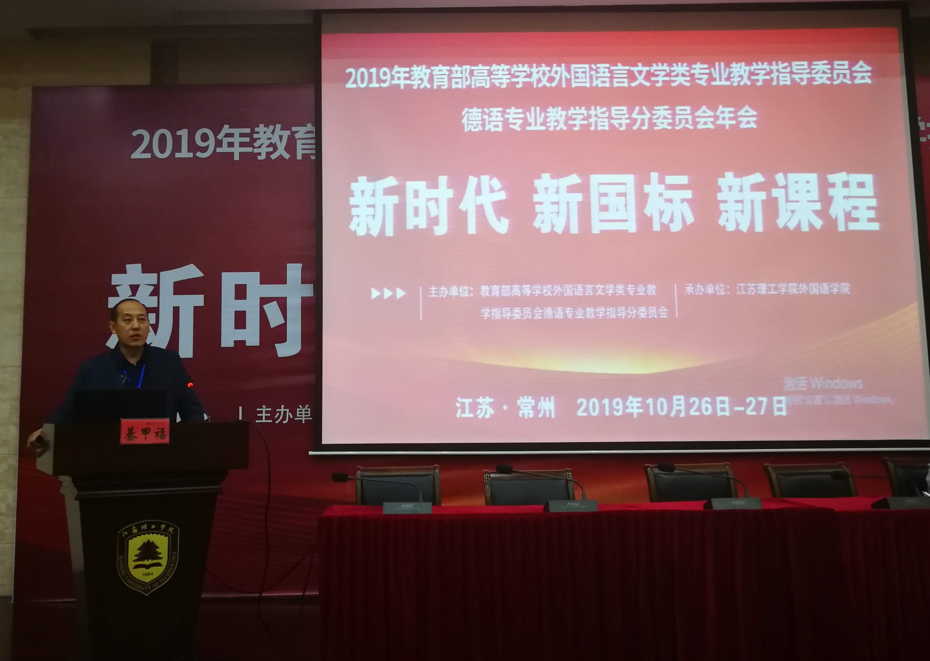2019年10月25-27日,我院德语系綦甲福教授参加了由教育部高等学校外国语言文学类专业教学指导委员会德语专业教学指导分委员会(简称:外指委德分委)主办、江苏理工学院外国语学院承办的2019年教育部外指委德分委年会。来自全国近90所高校德语专业的负责人、歌德学院、德国学术交流中心以及出版社的代表近百人齐聚江苏常州,围绕 “新时代、新国标、新课程”的议题各抒己见,共商德语专业发展大计。