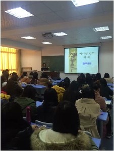 2014年12月5日,寒冷的冬风依然阻挡不了外语学院韩语系学生们的求知热情。外语学院韩语系特邀金莲兰教授就“中韩/韩中翻译”进行专题讲座。金莲兰教授曾供职于电视台记者,自由翻译人,翻译经验丰富,文学造诣较高。该讲座主要面向韩语系3,4年级的本科生和研究生,博文楼302教室座无虚席。金莲兰教授主要针对如何培养翻译兴趣以及如何提高中韩/韩中翻译能力展开讲解,通过主讲人的翻译历程和切身体验来激发同学们的翻译潜能;要求同学们把翻译看成是“作品的再创作”,提升文学素养和文字功底。并且,通过翻译实例,具体讲解翻译中容易出现的错误和应对技巧。讲座生动而不乏精华,娓娓地向学生们灌输了翻译的成才之路。韩语系各位老师也参加了该专题讲座。