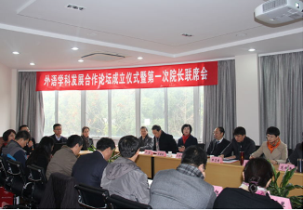 外语学科发展合作论坛由上海交通大学外国语学院倡议成立,秉承“优势互补、资源共享、互惠互利、合作共赢”的宗旨,将在外语学科师资队伍建设、人才培养、学术研究及产学研等方面,开展实质性合作。