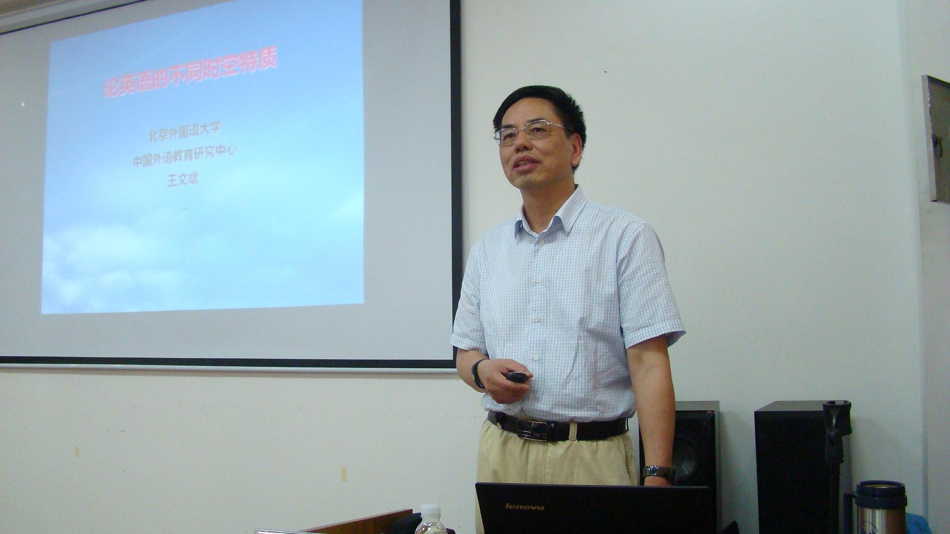 王文斌简介:原宁波大学副校长,现为北京外国语大学校长助理、中国外语教育研究中心主任,国家社科基金会议评审专家,中国认知语言学研究会副会长,中国英汉语比较研究会常务理事,教育部高等学校教学指导委员会委员(英语专业教学指导分委员会),《外语教学与研究》杂志副主编。在《心理学报》、《外语教学与研究》等杂志上发表论文117篇,已出版学术专著《历史语言学视野下的英汉语序对比研究》等五部,主编《心理空间理论和概念合成理论研究》等两部,出版学术译著《话语与译者》等五部,主持并完成国家、部、省级课题8项;目前正在主持国家社科基金课题一项。