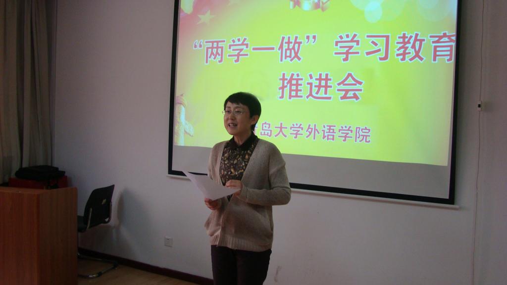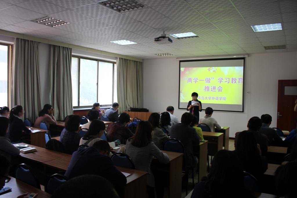 会上,院党委副书记牟晓燕向全体党员宣读了《外语学院“两学一做”学习教育实施方案》。