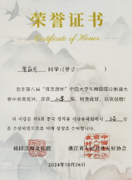 该荣誉的取得充分证明了我院学子们的优秀实力,体现了我院的高层次育人水平。本次比赛不仅提高了同学们韩语学习的积极性及文学素养,也促进了各高校之间的友好交流。