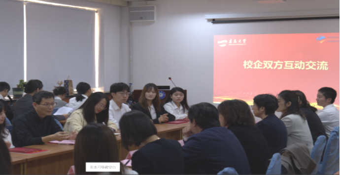 校企双方在仪式上展开深入的互动交流。青岛大学及外语学院领导与青岛罡金国际合作服务有限公司总经理夏纲举就校企合作、专业建设和学生培养等议题进行深入探讨。双方均表示,期待未来能进一步强化协同育人机制,拓展合作空间,为学生发展提供更广阔的平台。