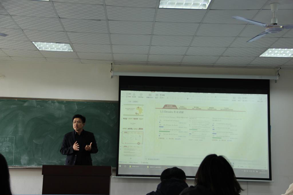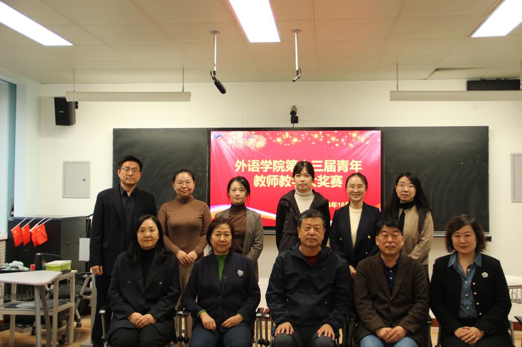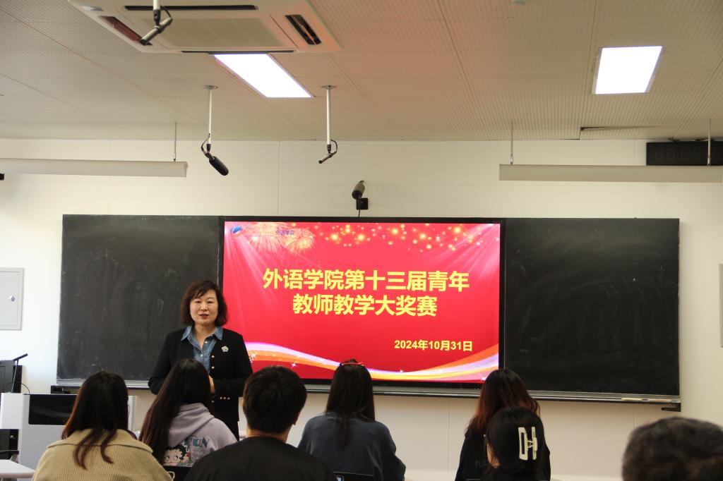 第二个环节青年教师教学大奖赛在博文楼406举行,外语学院副院长王薇主持比赛。