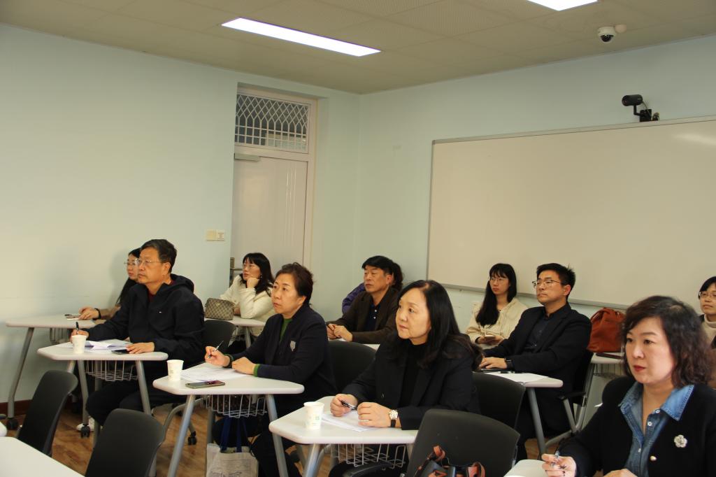 第一个环节教学分享会与师德师风学习在博文楼401举行,外语学院副院长王薇主持了面向全体教师的教学分享会及师德师风理论学习。
