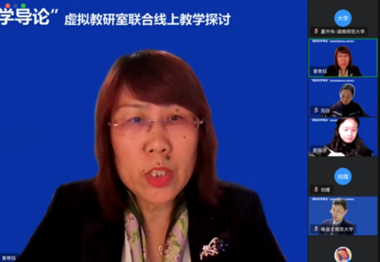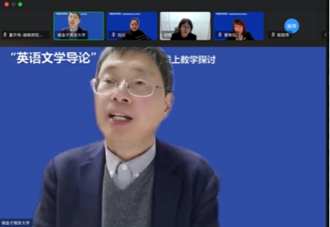 2024年12月16日晚,我院王薇教授受邀作为授课分享教师,参加了“英语文学导论”课程建设联合线上教学研讨。本次活动由湖南师范大学“文学文化课程虚拟教研室”和南京大学“英语专业文学与文化课程群虚拟教研室”联合举办,南京大学杨金才教授和湖南师范大学曾艳钰教授担任点评专家,我院王薇老师与湖南第一师范学院欧丽萍、闽南师范大学刘熠、湖南师范大学夏开伟先后进行了授课分享。活动由外研社高等英语资讯视频号同步直播,在线参与人数近四千人。