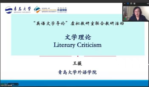 在文学理论部分的教学分享中,王薇着重从学情分析、文学导论课程在外语专业人才培养体系中的作用、文学理论为文学文本阐释提供思想资源、专业话语、研究视角等方面,展示了青岛大学外语学院“英语文学导论”团队多年来的教学经验与课程建设情况,并向全国同行推介了青岛大学课程组持续建设的数字课程和数字教材。此次教研活动的成功举办,一方面有助于提升教师的教学水平与专业素养,另一方面,通过专家的点评与指导,推动了课程的创新与发展。教研活动激发了同行教师对“英语文学导论”课程教学的热情与思考,也充分体现了多年来青岛大学外语学院在课程建设、人才培养等方面卓有成效的创新改革,以青大教学经验为全国同行的教学实践注入了新的活力。
