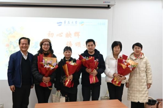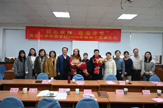 12月12日,青岛大学外语学院举办了“初心映辉,语颂芳华”2024年教职工荣休仪式。荣休教师于华、张积模、芮巧燕、李兰及院党委书记陈崇研、院长卞建华、副院长布占廷、王薇、曹杉,英语系副主任张驰,英语教育系副主任吕凯良,日语系副主任杜雪丽参加活动。仪式由院党委副书记于苗主持。