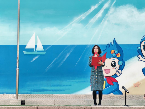 于苗在揭牌仪式上发表讲话,她表示,今后,青岛大学外语学院将整合高校与基础教育资源,与青岛市市南区实验小学教育集团合作开展中小学生多语思政高校研学,组织优秀大学生以“大手拉小手”的研训形式,助力中小学生提升外语口语、语言演说及记忆思维学习能力。她寄语未来与市南区实验小学教育集团以双语为翼,共同讲述中国故事,推进大中小学思想政治教育一体化创新实践。